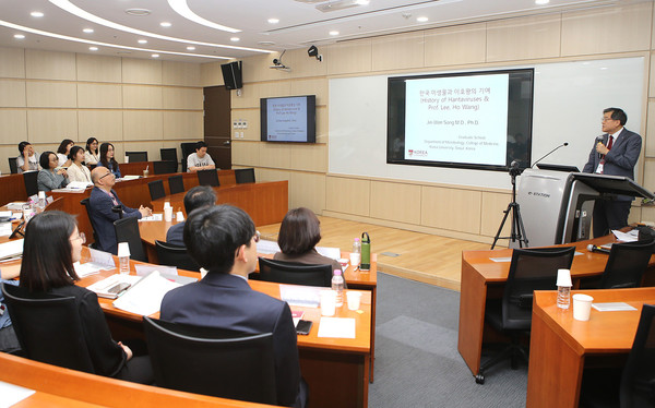 이어 △한국 미생물학의 발전과 그 계보(인제의대 박지영 교수) △한국 바이러스학 연구의 스페셜리스트, 이호왕(전북대 신미영 교수) △유행성출혈열과 근현대 동아시아(서울의대 이규원 교수) △이호왕의 유행성출혈열 백신 연구네트워크(고려대 여성의학사연구소 조희수 학예사) 등 강연과 토론이 진행됐다.