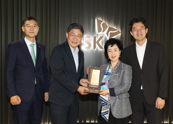 수협은행은 지난 3일, 강신숙 은행장과 최민성 기업투자그룹 부행장이 성남시 분당구 SK케미칼 에코랩을 방문해 안재현 사장과 환담을 나누고 폐플라스틱 감축 등 기후변화 대응 및 해양환경보호 실천에 앞장선 공로에 대한 감사패를 전달했다.