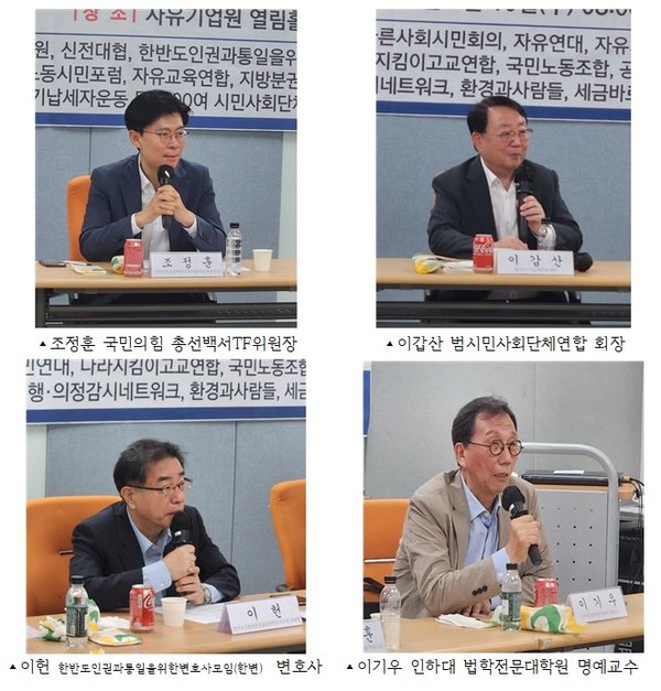 한편, 이날 회의에는 이갑산 범사련 회장, 이기우 인하대 법학전문대학원 명예교수, 이헌 한반도인권과통일을위한변호사모임(한변) 부회장, 태범석 한경국립대학교 명예총장(범사련 상임공동대표), 김건 신전대협 공동의장, 이범석 신전대협 공동의장, 최승노 자유기업원 원장, 박춘희 국민노동조합 법률원의장(변호사), 이용진 자유정의시민연합 회장, 김성호 지방분권개헌국민행동 공동의장, 김정수 자유교육연합 상임대표, 최병환 환경과사람들 대표, 김선홍 행.의정감시네트워크 대표, 김영태 공정언론국민연대(공언련) 사무총장, 장현준 한국시민단체네트워크 공동대표, 한경주 경제민주화시민연대 대표(변호사) 박태순 환경문화시민연대 사무국장 등이 참석했다.