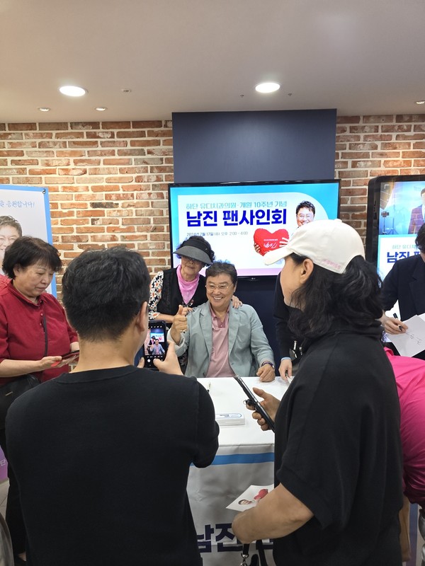 한편, 부산하단 유디치과의원을 찾은 남진은 밝은 미소와 함께 '건치 오빠'의 매력을 발산하며 팬들의 호응을 이끌어냈다. 사인회에 참석한 팬들 역시 현장에서 남진의 히트곡을 부르는 등 화기애애한 분위기로 진행되었다.