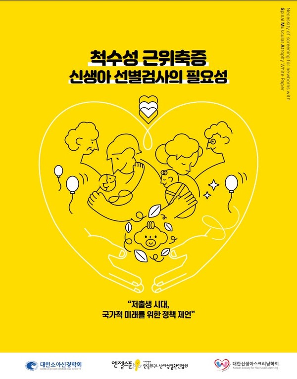 [뉴스인] 김태엽 기자 =(사)한국희귀·난치성질환연합회가 대한소아신경학회, 대한신생아스크리닝학회와 공동 제작한 ‘척수성 근위축증 신생아 선별검사의 필요성 백서’를 발간하였다. 해당 백서는 척수성 근위축증에 대한 신생아 선별검사 도입의 필요성을 제시하고 있다.