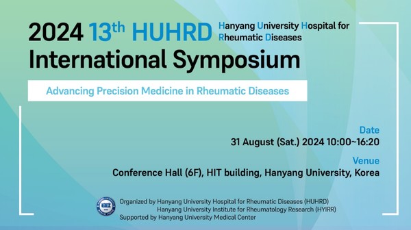 [뉴스인] 조진성 기자 = 한양대학교류마티스병원(원장 김태환)은 오는 8월31일 한양종합기술원(HIT) 6층 회의실에서 ‘류마티스질환에 대한 정밀의학의 발전(advancing precision medicine in rheumatic diseases)’를 주제로 ‘제13차 HUHRD 국제 심포지엄’을 개최한다.