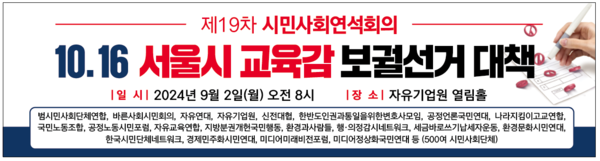 500여 개의 중도·보수 시민단체가 참여하는 시민사회연석회의는 당분간 서울시교육감선거에 집중해 시민사회의 합리적인 에너지와 서울시민의 간절한 요구를 모아나갈 예정이다.