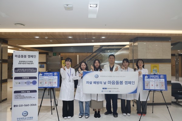 [뉴스인] 조진성 기자 = 한양대학교구리병원(병원장 이승환) 생명사랑위기대응센터는 지난 2일 세계 자살예방의 날(9월10일)을 맞아 병원 임직원들과 내원객들을 대상으로 '2024년 마음돌봄 캠페인'을 진행했다.