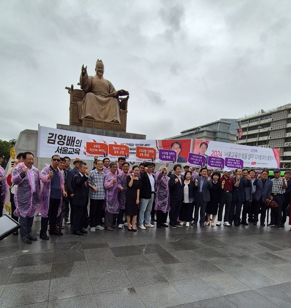 [뉴스인] 조진성 기자 = 성결대학교 김영배 교수가 지난 12일 오전 10시30분 광화문 세종대왕상 앞에서 서울시교육감 예비후보 출마 선언을 했다.