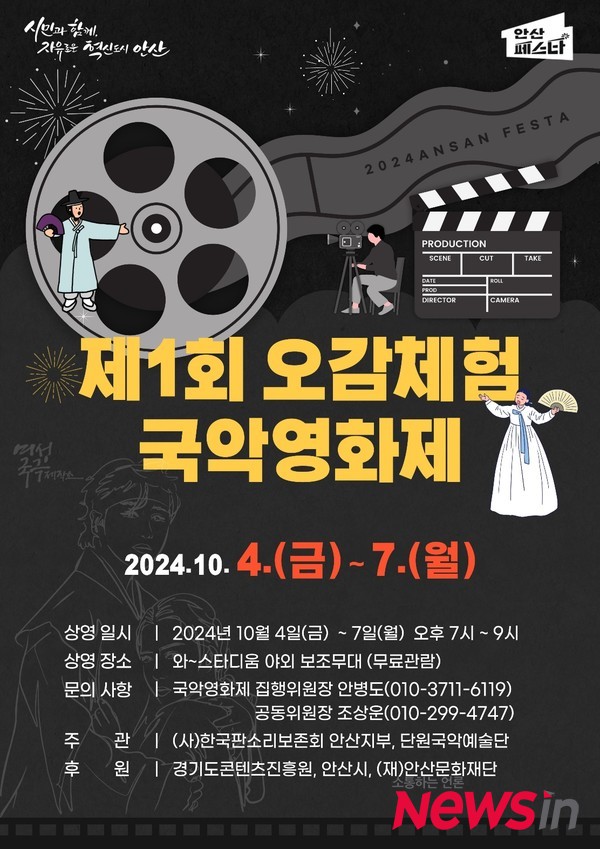 [뉴스인] 윤은중 기자 =우리나라에서 처음 제1회 오감체험 국악영화제가 오는 10월 4일부터 7일까지 안산 페스타 와 ~ 스타디움에서 펼쳐진다.