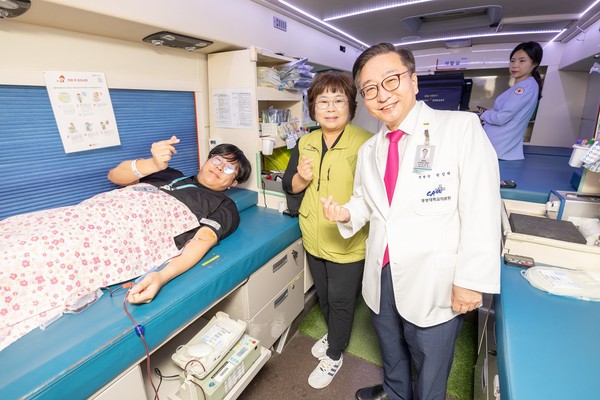 [뉴스인] 조진성 기자 = 중앙대학교병원(병원장 권정택)과 중앙대의료원 노동조합(지부장 이순자)이 지난 7일 중앙대병원 응급의료센터 앞에서 노사가 함께하는 '환우 사랑 헌혈 릴레이' 행사를 진행했다.