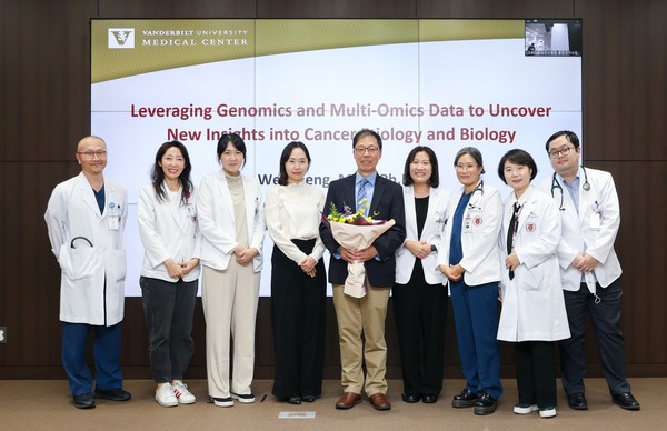 이번 특강은 ‘유전체 및 다중 오믹스 데이터를 활용한 암의 원인 및 생물학에 대한 새로운 통찰(Leveraging Genomics and Multi-Omics Data to Uncover New Insights into Cancer Etiology and Biology)’을 주제로 각 임상과 교수를 비롯해 교직원 70여 명이 참석한 가운데 성황리에 진행됐다.