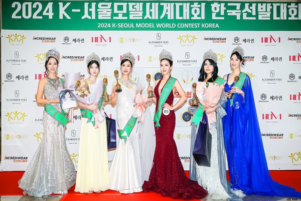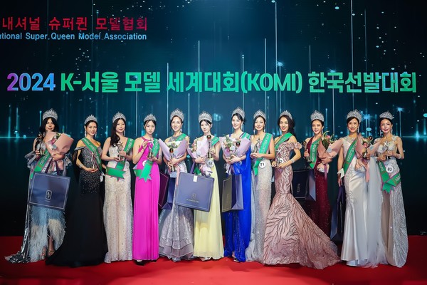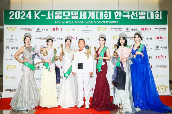 [뉴스인] 조진성 기자 ='2024 K-서울 모델 세계대회 한국 선발대회'가 지난 24일 서울 송파구 호텔 파크하비오 그랜드볼룸에서 수상자들이 기념촬영을 하고 있다.