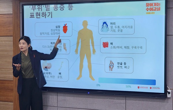‘이음소통’이라는 명칭으로 운영하는 이번 교육은 고려대학교의료원 사회공헌사업팀 주관으로 ‘찾아가는 수어교실’ 형식으로 진행된다. 지난 10월18일부터 고려대안암병원과 구로병원, 안산병원의 교직원과 학생 등이 교육에 참여했다.