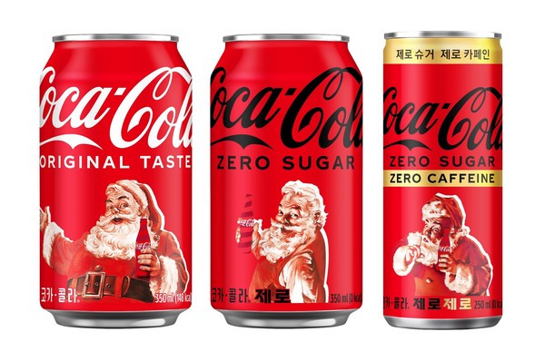각기 다른 산타클로스 이미지가 담긴 코카-콜라 오리지널, 코카-콜라 제로, 코카-콜라 제로제로 크리스마스 패키지는 LG생활건강의 자회사 코카-콜라 음료를 통해 마트, 편의점, 온라인 등에서 순차적으로 만나볼 수 있다.