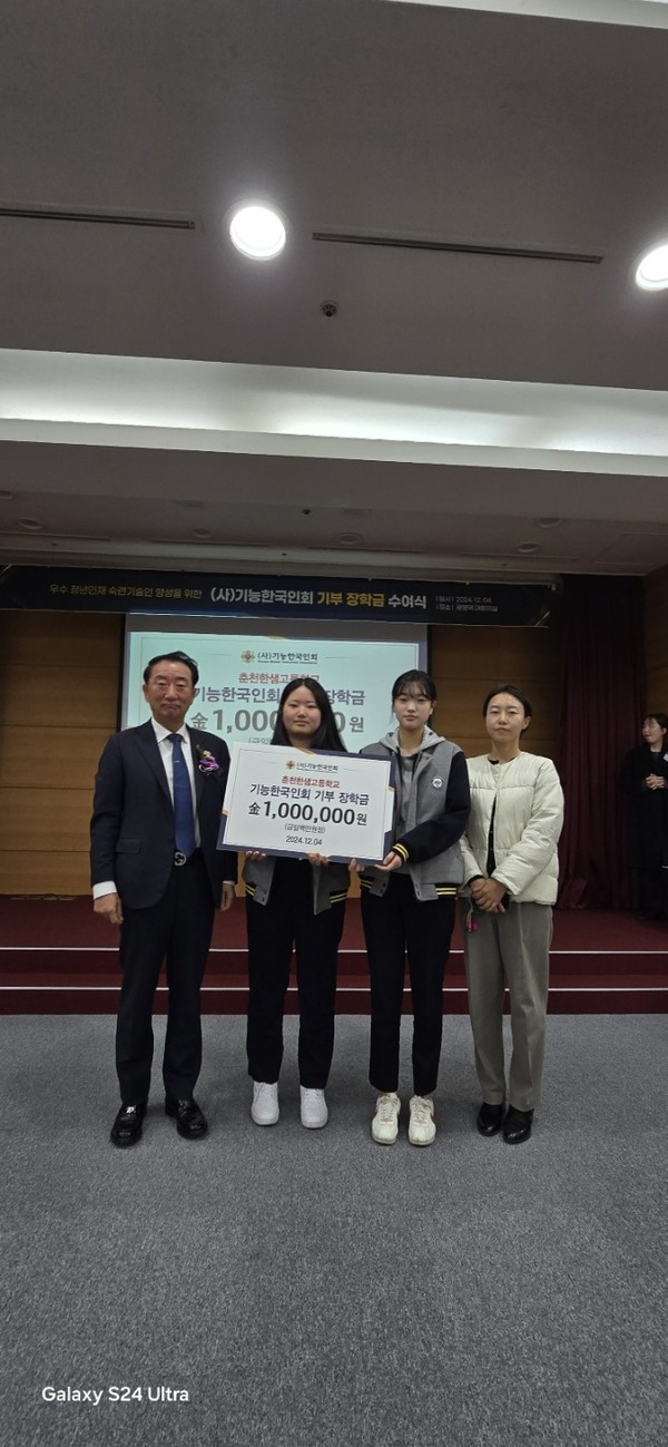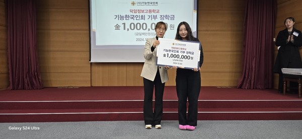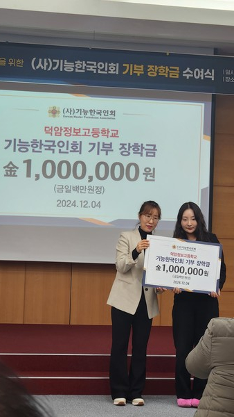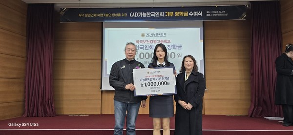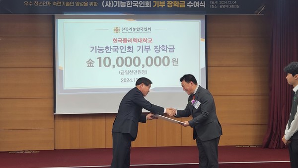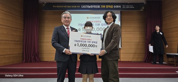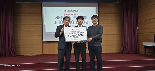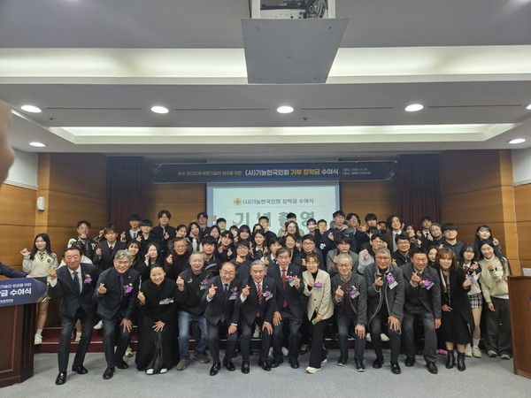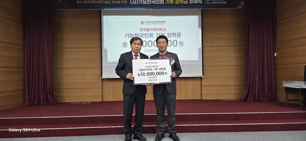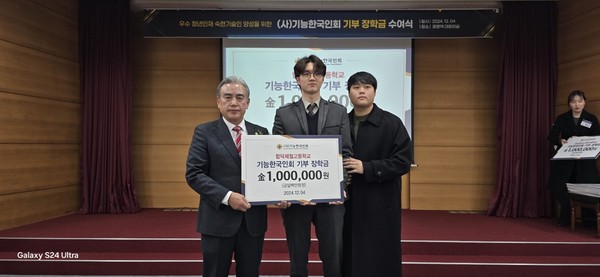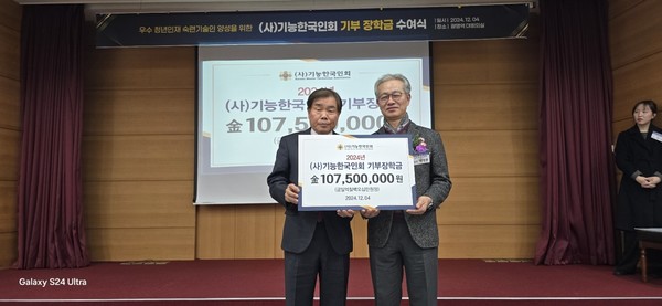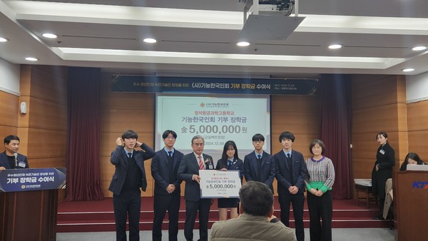 (사)기능한국인회는 이번 장학금 기부에서 (사)기능한국인회 소속 회원사 44기업이 총 1억750만원의 장학금을 모아 기부하게 됐다.
