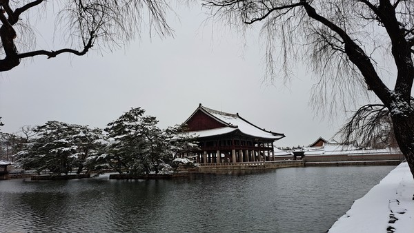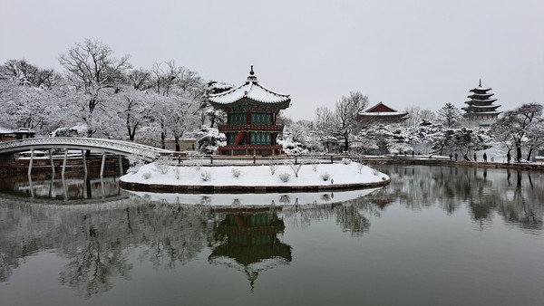 [뉴스인] 이재영 기자 =향원정은 경복궁에서 가장 운치 있는 곳이며 겨울철 하얀 눈으로 덮인 경복궁의 향원정과 경회루 주변의 고즈넉한 고궁 설경은 감탄사를 자아내게 만든다.
