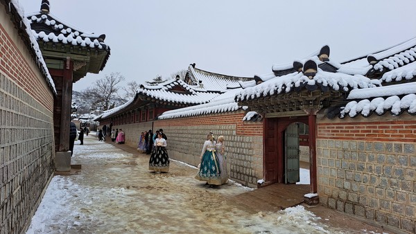 특히 외국인 관광객들은 한복까지 갈아 입고와 고궁의 설경을 배경으로 사진을 찍으며 관광을 즐기고 있었다. 눈이 소복이 쌓인 설경의 모습을 담기위해 밝은 표정을 지으며 사진을 찍는 모습이 정겨워 보이기 까지 했다.