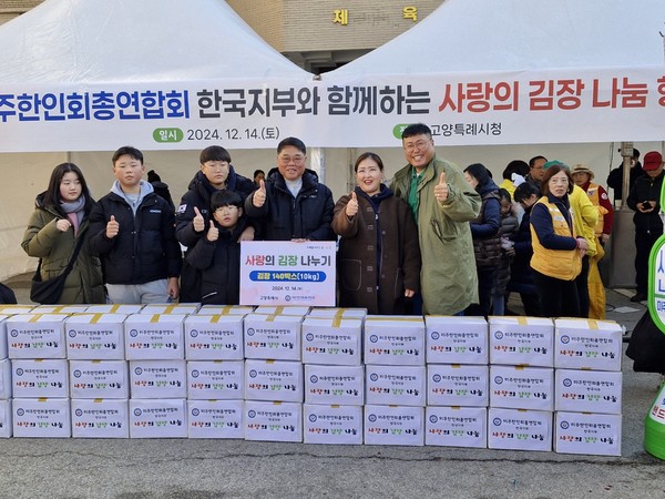 [뉴스인] 조진성 기자 = 미주한인회총연합회 한국지부(지부장 서동하)는 고양시(시장 이동환)와 함께 지난 14일 고양시청에서 ‘사랑의 김장 나눔’ 행사를 개최하여 지역 내 어려운 이웃들에게 따뜻한 나눔을 실천했다.