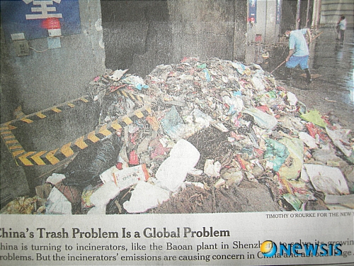 뉴욕타임스는 12일(현지시간) "중국이 쓰레기를 대부분 소각하지만 이 과정에서 배기가스 등 환경 오염 문제가 지구촌의 문제로 대두되고 있다“고 지적했다. 뉴욕타임스는 A섹션 1면에 사진뉴스와 11면에 올린 톱기사에서 중국의 심각한 쓰레기 문제를 진단했다.