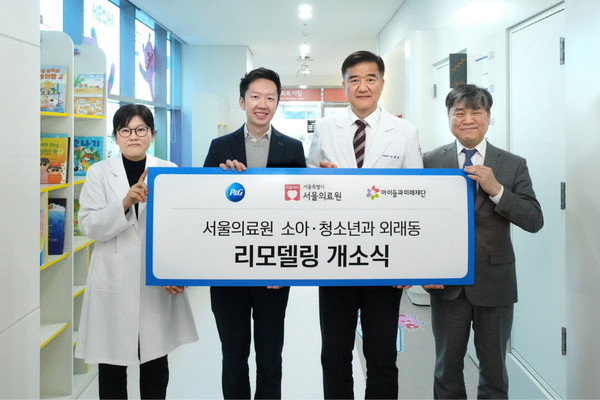 [뉴스인] 조진성 기자 = 서울특별시 서울의료원(의료원장 이현석)은 글로벌 생활용품 기업 한국P&G(대표 이지영), 사회복지법인 아이들과미래재단(이사장 이훈규)과 함께 소아청소년과 의료 환경 개선을 위해 진행한 리모델링 공사를 완료하고, 지난 7일 개소식을 개최했다.