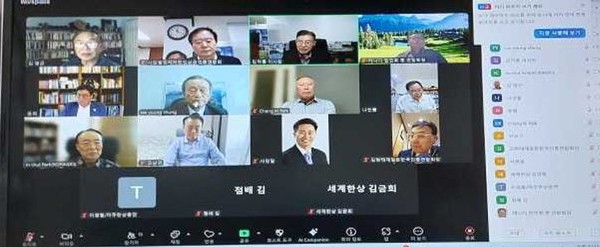 [뉴스인] 조진성 기자 = 지난 4일 세계한인상공인총연합회 김덕룡 이사장의 주관으로 세계한인회총연합회 고상구 회장, 세계한인언론인협회 김명곤 회장을 비롯한 미국, 일본, 러시아 등 주요 국가 및 아시아, 아프리카 지역 한인 단체장들이 참여한 화상회의(Zoom)가 개최되었다. 이 회의는 동포 인터넷은행인 ‘포도뱅크’ 설립을 위한 한상펀드 조성을 논의하기 위해 마련돼다.