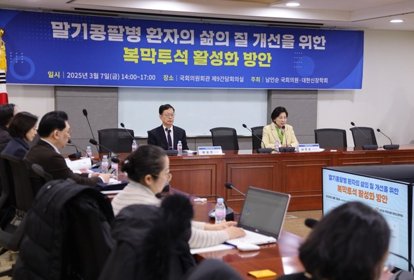 [뉴스인] 조진성 기자 = 대한신장학회(이사장 : 박형천)가 지난 7일 남인순 의원(더불어민주당 보건복지위원회)과 함께 ‘말기콩팥병 환자의 삶의 질 개선을 위한 복막투석 활성화 방안 토론회’를 개최했다.