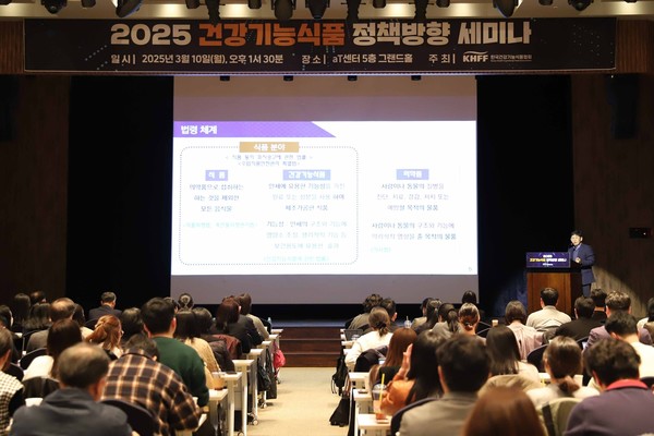 [뉴스인] 조진성 기자 = 한국건강기능식품협회(회장 정명수, 이하 건기식협회)가 지난 10일 양재 aT센터에서 ‘2025 건강기능식품 정책방향 세미나’를 개최했다고 11일 밝혔다.