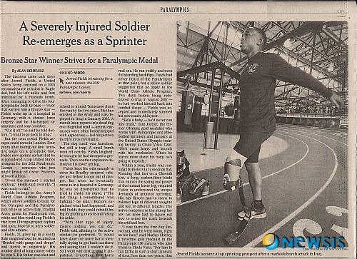 뉴욕타임스가 14일(현지시간) B섹션 9면 톱기사로 "전쟁에서 '브론즈 메달'을 받은 제로드 필즈가 4년이 지난 지금 다른 메달을 준비하고 있다. 특수의족을 단 그는 2012년 장애인올림픽(패럴림픽)에서 미국 대표팀의 유력한 메달 후보"라고 소개했다.