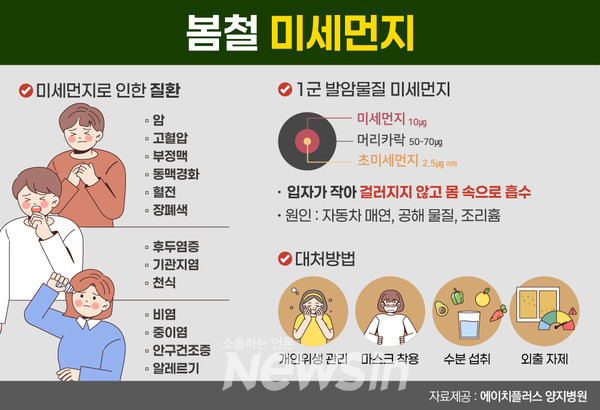 [뉴스인] 민경찬 기자 = 봄철이 되면 포근한 날씨와 함께 미세먼지, 초미세먼지, 황사가 찾아와 호흡기 건강에 악영향을 미칠 수 있어 각별한 주의가 필요하다.