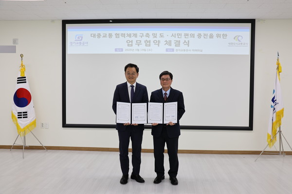 [뉴스인] 조진성 기자 = 경기교통공사(사장 민경선)는 3월 19일(수) 세종도시교통공사(사장 도순구)와 ‘대중교통 협력체계 구축 및 도·시민 편의 증진을 위한 업무협약’을 체결했다고 밝혔다.