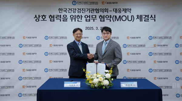 [뉴스인] 조진성 기자 = 대웅제약(대표 이창재·박성수)은 한국건강검진기관협의회(회장 김동일, 이하 한기협)와 업무협약(MOU)을 체결하고, 최신 디지털 헬스케어 진단 기기를 의원급 의료기관에 공급해 건강검진 서비스를 고도화한다고 31일 밝혔다.