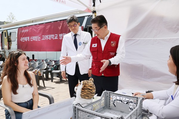 고려대학교 안암병원은 지난 24일 고려대학교 정문 앞 중앙광장에서 이동병원을 설치하고 의료 취약계층과 재학생, 외국인 유학생을 대상으로 무료진료를 실시했다.