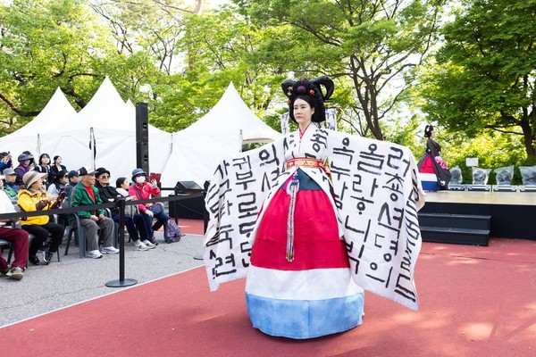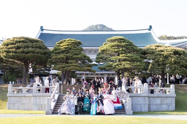 ‘2024 한복모델 선발대회 인코리아(한인코)’ 입상자 30여 명이 청와대 춘추관 앞에서 국악 퓨전 그룹 ‘난새’와 함께 특별 한복 패션쇼를 펼쳤다.