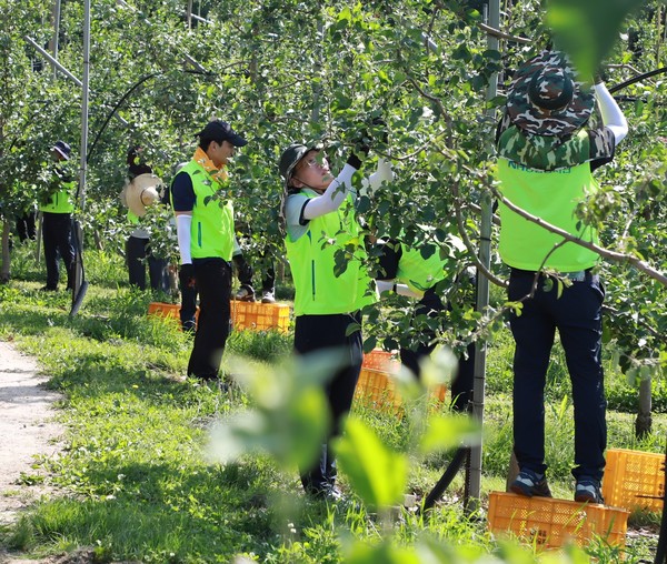 이날 일손돕기는 여영현 농협상호금융 대표이사 및 부문별 임직원 30여명이 참석했으며, 경기도 포천시 영중농협 관내 농가를 방문하여 홍로사과 적과 작업과 하우스 정비 작업 등을 수행하였고, 관내 조합원들과 소통하며 농업·농촌 현장의 소리를 듣는 시간을 보냈다.