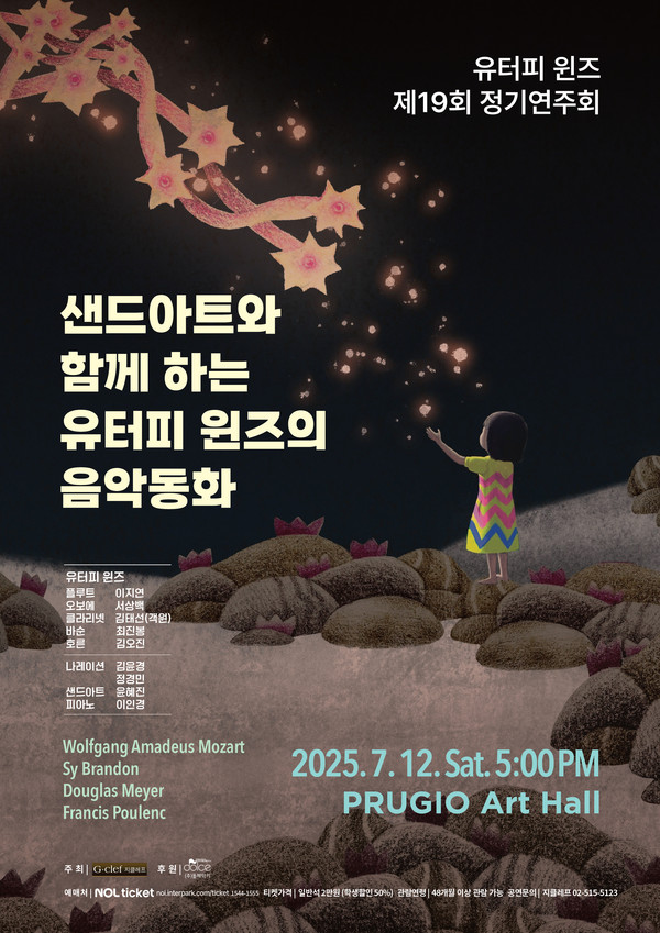 [뉴스인] 김영일 기자 = 2025년 7월 12일 토요일 오후 5시, 푸르지오 아트홀에서 ‘유터피 윈즈’가 제19회 정기연주회를 개최한다. 이번 공연은 음악과 동화, 그리고 샌드아트가 어우러진 특별한 무대로 관객들을 맞이한다.