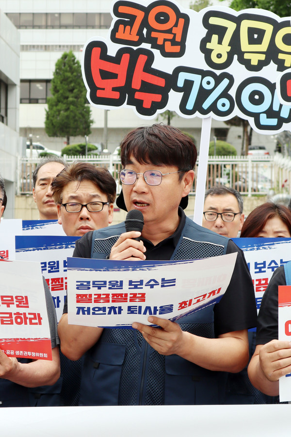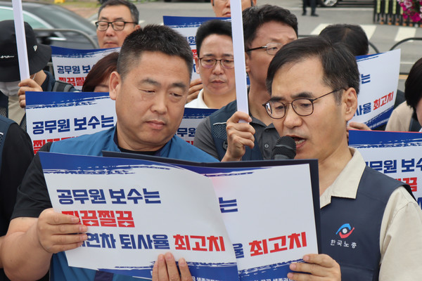 김현진 공무원연맹 위원장은 “낮은 보수와 처우 악화로 공무원의 삶은 날로 불안정해지고 있다. 신규 공무원의 퇴직률은 치솟고, 공직사회는 무너지고 있다. 공무원 개인만의 문제가 아니라 국민 전체의 삶의 질이 달린 문제”라며, “정부가 공무원의 불안정한 삶을 더 이상 외면하지 말고, 민간 수준의 정당한 보수를 지급할 것”을 요구했다.