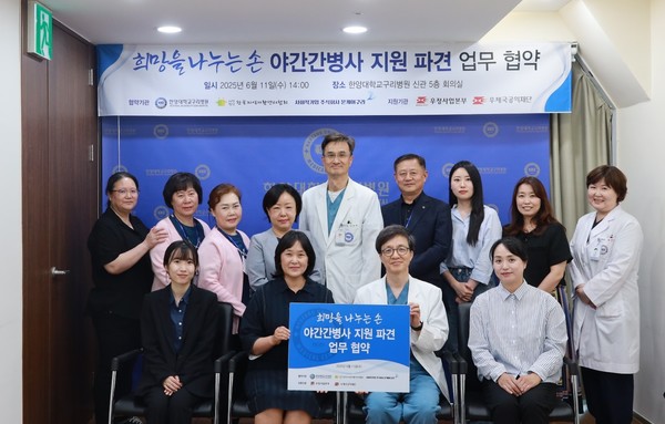 이날 협약식은 사업의 원활한 추진과 기관 간 협력 강화를 도모하기 위해 마련되었으며, 우체국공익재단, 한국지역자활센터협회, 사회적기업온케어구리(주식회사 온케어구리)관계자와 한양대학교구리병원 관계자, 그리고 파견 간병사들이 참석해 협약의 의미를 되새기고 상호 협력을 다짐하는 시간을 가졌다.