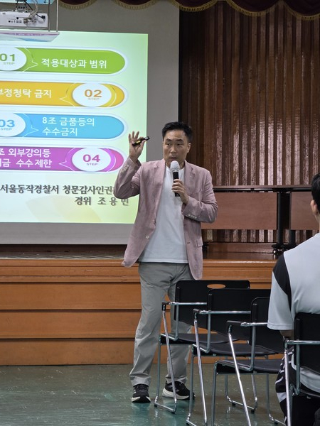 조 강사는 2025년부터 각 경찰서 요청으로 전 직원을 대상으로 청탁금지법 교육을 이어가고 있으며, ‘국민에게 친근한 청렴 경찰’ 조성에 기여하고 있다.