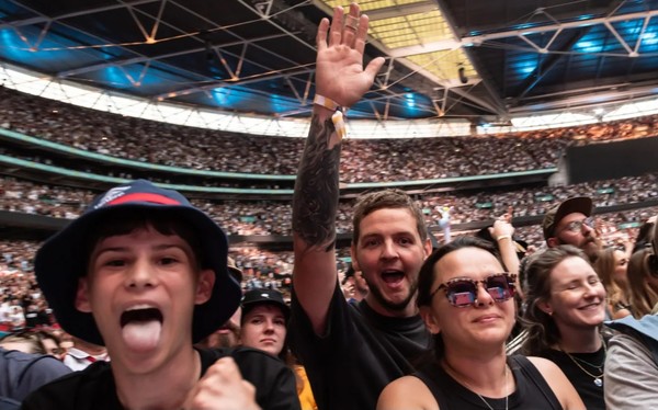 공연 당일 웸블리 스타디움은 말 그대로 축제의 현장이었다. 팬들은 무려 하루 25만 파인트(약 14만 2천 리터)의 맥주를 마셨다. 이는 500ml 맥주병 약 28만 4천 병, 355ml 맥주캔 약 40만 개에 해당하는 양으로, 올림픽 규격 수영장 1/18에 달하는 양이다. 팬들은 맥주잔을 부딪치며 90년대의 향수를 나누었고, 오아시스의 노래에 맞춰 9만 명이 하나가 된 듯한 장관을 연출했다.