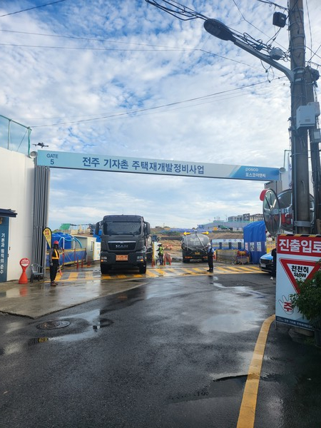 문제는 단순한 불편을 넘어 안전에도 직결된다. 출입구 관리가 부실해 비산먼지가 무방비로 퍼지고 있으며, 좁은 골목길에는 신호수조차 배치되지 않아 교통체증은 물론 난폭 운전 차량과 주민이 충돌할 뻔한 상황도 빈번히 발생한다.