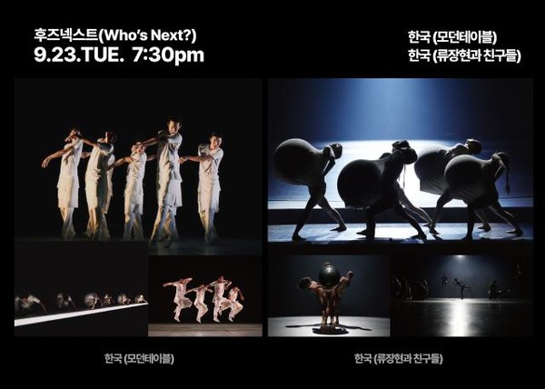 축제의 대미는 9월 23일(화) ‘Who’s Next?’ 프로그램으로 장식되며, 국내 무용단 모던테이블의 〈Medita〉와 류장현과 친구들의 〈GRAVITY〉가 무대에 올라 한국 창작무용의 현재와 미래를 제시한다.