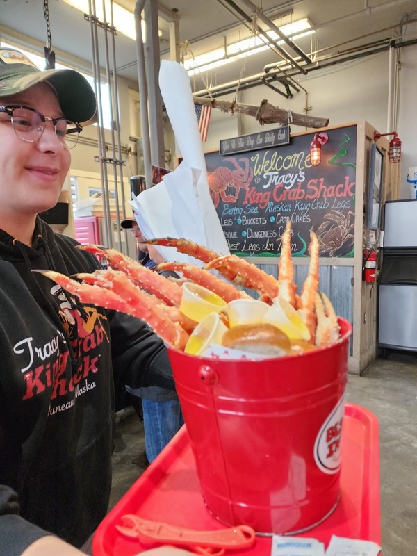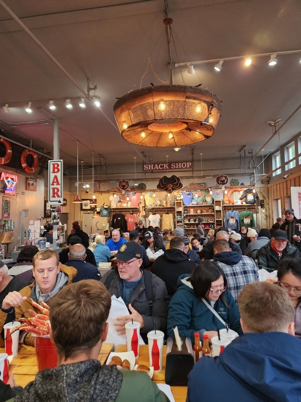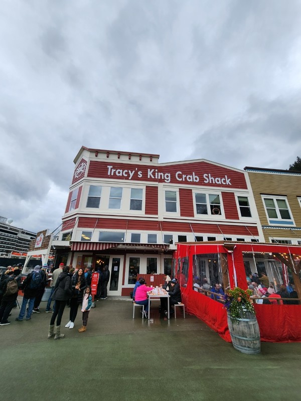 간단하게 술 한잔을 한 이후 또 하나의 명소인 트레이시 킹 크랩 샥(Tracy King Crab Shack)을 찾았다. 알래스카 최고의 대게 맛집으로 소문난 곳이다. 이 곳 역시 만만치 않은 가격임에도 불구하고 엄청난 대기 줄이다. 레드 킹 크랩(Red King Crab), 스노우 크랩(Snow Crab), 던전리스 크랩(Dungeness Crab) 3가지 메뉴가 있다. 여기에 알래스카 로컬 맥주를 곁들이면 더 이상 바랄께 없다. 여기서는 주문을 받을때 출신지역명과 이름을 기록해야 한다. 그런 다음 대게가 준비되면 "New york, Smith", "England London, James", "South Korea, Mr. Jung" 등등 이름을 크게 호명한다. 먹는 재미 이외에 또 하나의 볼거리다. 크루즈로 여행온 전세계인을 만날 수 있기 때문이다.