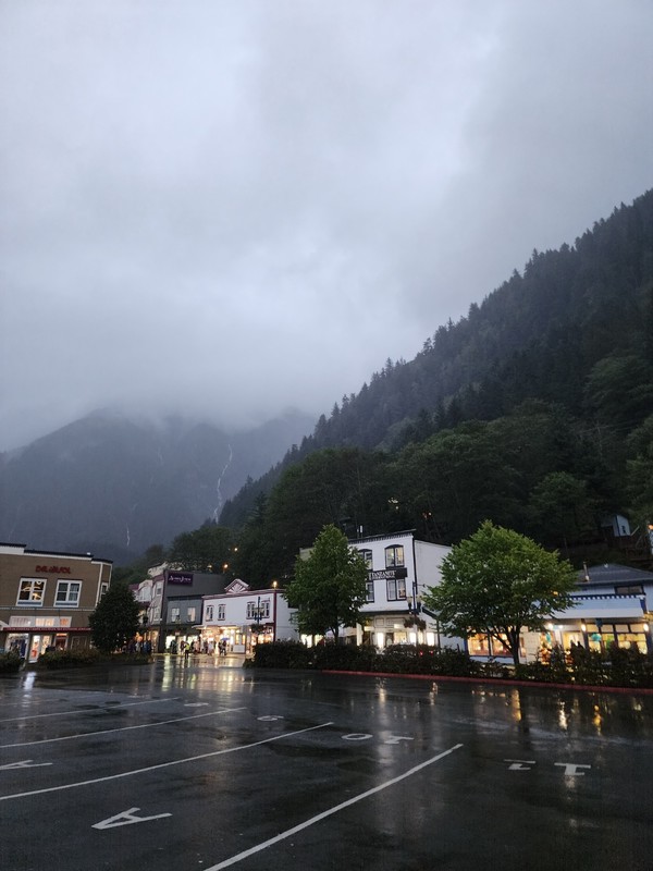 벌써 어둠이 내려 앉았다. 이제 배로 돌아갈 시간이다. 하루종일 내리는 비를 맞으며 선창가 길을 재촉하니 정박해 있는 크루즈 선박의 화려한 불빛이 눈에 들어온다. 비오는 주노의 밤을 더없이 운치있게 만들어주고 있다.
