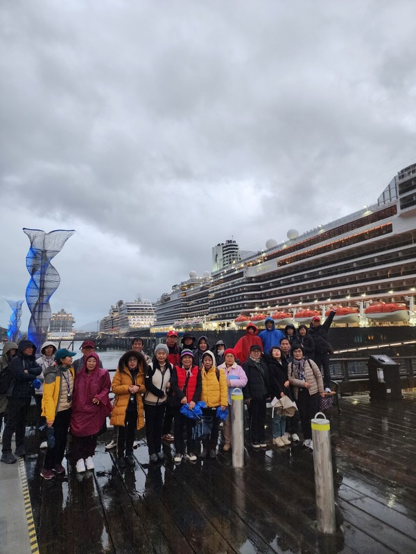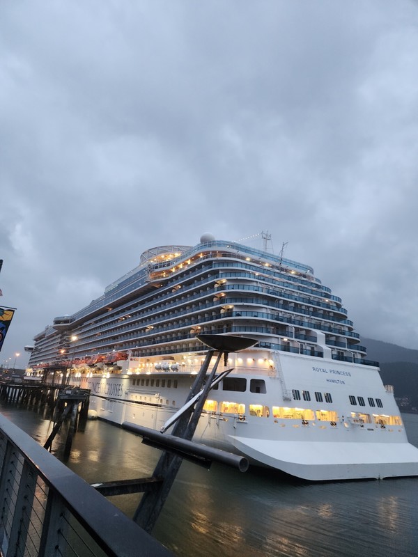 우리가 도착한 주노항에는 이미 두척의 대형 크루즈 선박(Holland America Koningsdam, Holland America Eurodam)입항해 있었다. 우리가 탄 배(Princess Cruise Royal)세번째로 들어왔고, 곧이어 네번째 초대형 크루즈 배(NCL Bliss)가 바로 뒤따라 들어왔다. 모두 10만톤에서 18만톤까지 초대형 크루즈 선박이다. 거의 주노 전체인구에 근접하는 규모의 크루즈 승객들로 인해 작은 소도시 주노가 순식간에 인산인해를 이루는 아이러니한 모습이 연출되었다.