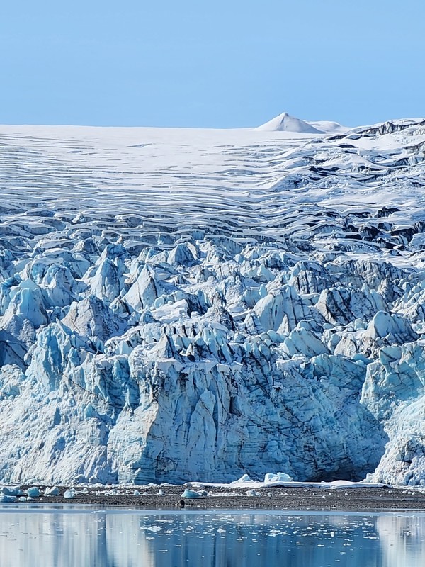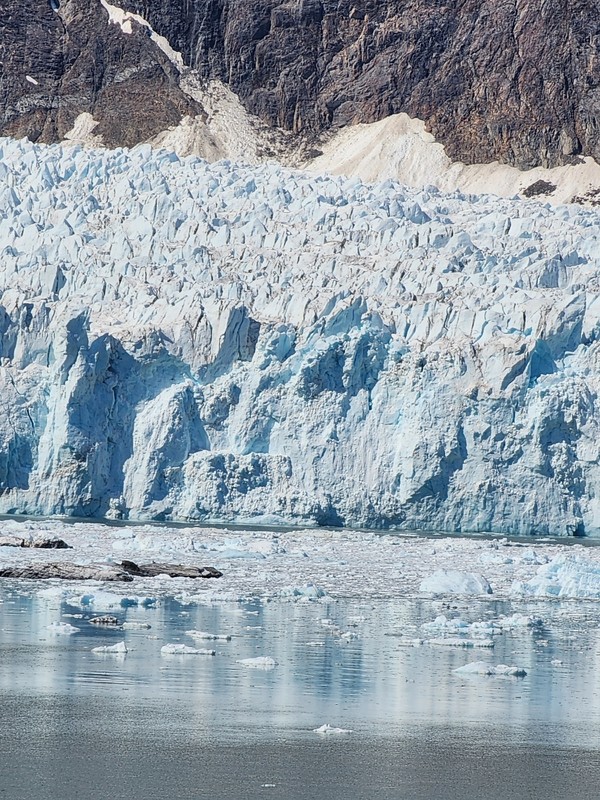 오래전 정상부근에 내린 눈이 쌓이고 쌓여 만들어진 빙하가 세월의 힘에 의해 밀리고 밀려 바다와 접하는 마지막 순간에 다다른 빙하의 모습은 참으로 장엄하다. 순백의 얼음속에 파랗다 못해 파란 빛을 내뿜는 자태는 우리의 시선을 끌기에 조금도 부족함이 없다. 죽음을 앞둔 비장함 보다는 마지막 불꽃을 태우기 직전의 영광스럽 모습처럼 보인다.