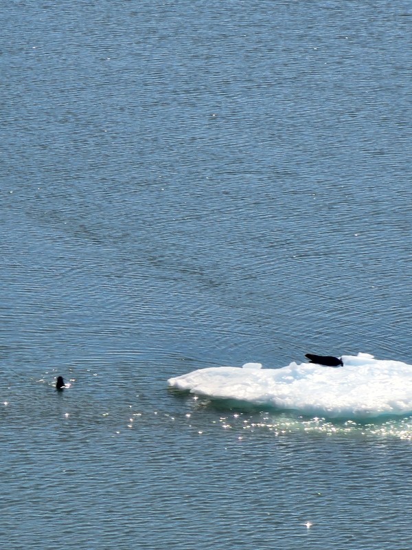 더불어 이곳에 서식하는 동물들도 볼 수 있는데 혹등고래, 범고래, 해달 등이 단골 손님이라고 한다. 이들이 나타나면 크루즈 선내방송을 통해 위치를 승객들에게 알려주어 모두에게 볼 수 있는 기회를 준다. 이번 여행에서는 운 좋게 해달 두 마리가 작은 빙산조각 주변에서 유영하는 장면을 포착했다. 순간 포착이었지만 귀중한 순간이었다.