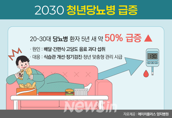 [뉴스인] 민경찬 기자 = 최근 20~30대 청년층 당뇨병 환자가 급증하며 ‘청년 당뇨’가 새로운 사회적 문제로 떠오르고 있다.