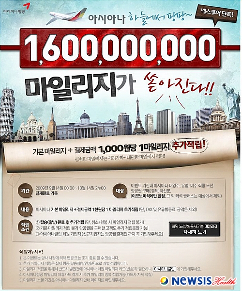 또 이를 아시아나항공 마일리지 제휴카드로 결제하면 구매금액 당 1000원에 1마일 적립 혜택이 또 추가로 적용돼 최대 1860마일을 추가 적립하게 된다.
