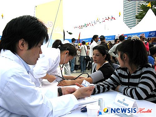 지난 12일 좋은강안병원과 좋은문화병원이 부산 해운대에서 열린 열린 ‘2008 외국인 어울림 마당’에 참여해 의료봉사활동을 펼쳤다. 이날 행사장을 찾은 사람들을 대상으로 혈압체크, 혈당체크는 물론 의료상담과 골다공증 측정 검사도 무료로 실시했다.
