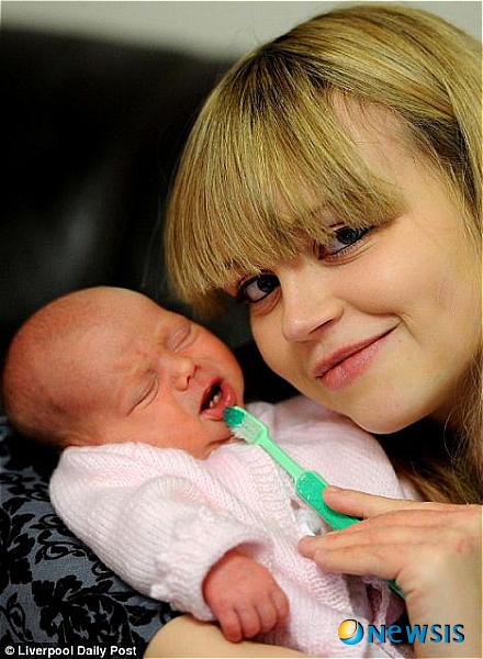【서울=뉴시스】박준형 기자 = 영국에서 치아 2개가 자란 상태로 아기가 태어나 화제가 되고 있다.