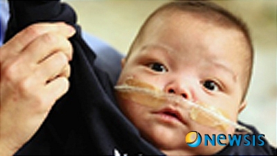 【서울=뉴시스】정의진 기자 = 몸무게 0.5㎏, 몸 밖으로 돌출된 장기기관을 가지고 태어난 한 아기가 7번의 수술 끝에 가족의 품으로 돌아가 화제가 되고 있다.