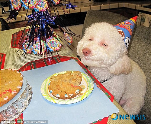 레일리는 지난해 생일파티 때 웃는 모습이 사진에 포착돼 '웃는 개'로 유명세를 탔다. 하지만 올해처럼 활짝 웃은 적은 처음이다.