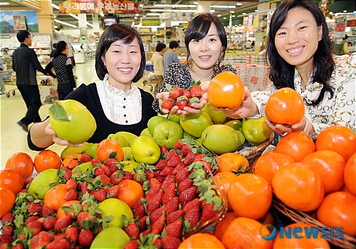 깊어가는 가을속에 맛과 향 때깔도 고운 신선한 햇과일이 23일 농협 하나로클럽 양재점 과일 매장에서 선보이고 있다. 이번에 선보인 햇과일은 딸기는 경남 산청,대봉시는 진주,모과는 청도에서 출하된 것들이다.